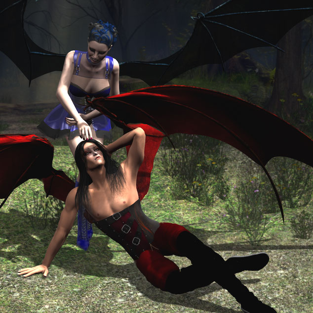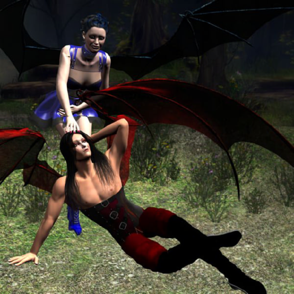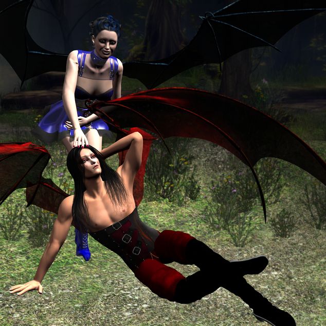Notes: So, I did the angels, and then I had to keep going, in the most obvious possible way. These aren't as pretty or as clean, but the damn bat wings are just goddamn ridiculous to pose.