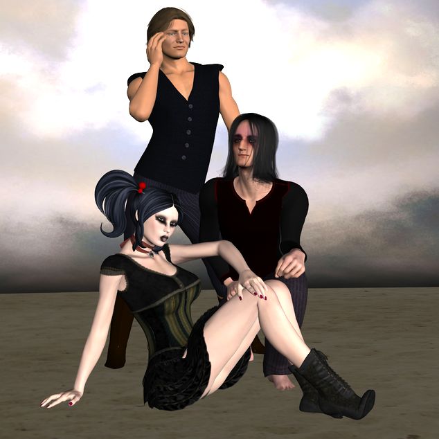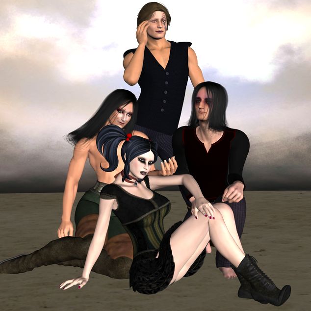Notes: So, after proving that Severen shouldn't smile, I went about trying to find the angles that made him look good. And then I decided to see how much of the band I could get into one image, before I crashed something. Assuming I can actually open the save file, I'll have a final version of the band (sans Baron), tomorrow, but right now, I have to go dress up like Arkady and go to my class reunion.