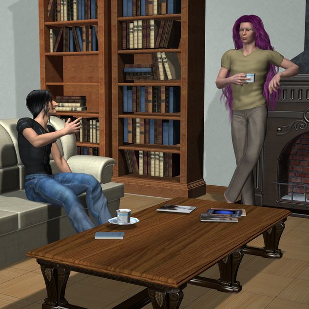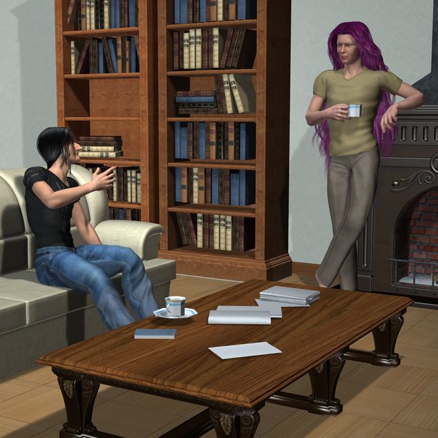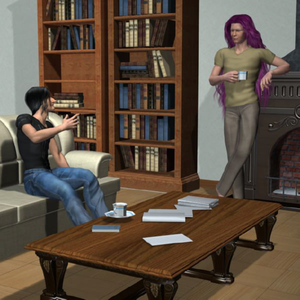 Notes: This was a lot easier than I was expecting. The apartment set takes for effing ever to load, and it usually crashes on saves, but this time it went pretty smoothly. I'm not entirely happy with the amount of dead space in the image, but I'll live with it. Three frames, and the last one's going to press.