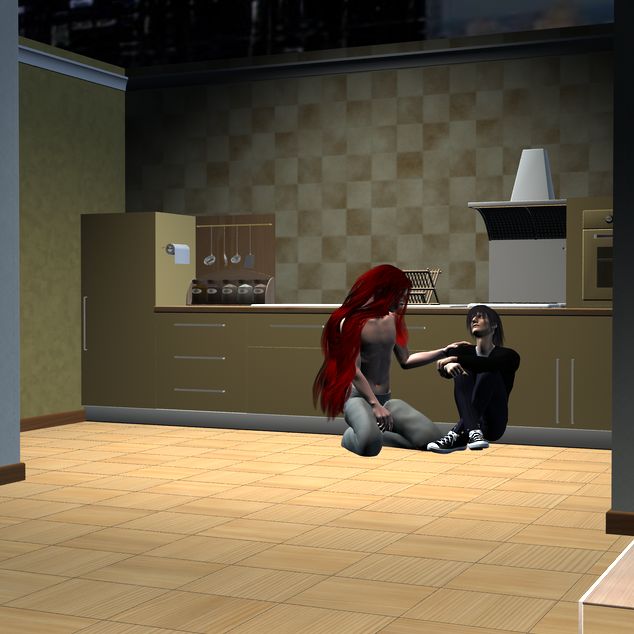 Notes: So, for my own convenience, I'm building the apartment that Sin lived in, in college. It's based on an apartment that is not in Boston, at all, but is — or was — in a brownstone on Henry St, in New York. My memory of the place is more than twenty years old, so I know some of the walls are in completely bizarre places, but this one's shot in the kitchen (or lack thereof), and I know I got that right — right down to the yellow appliances.