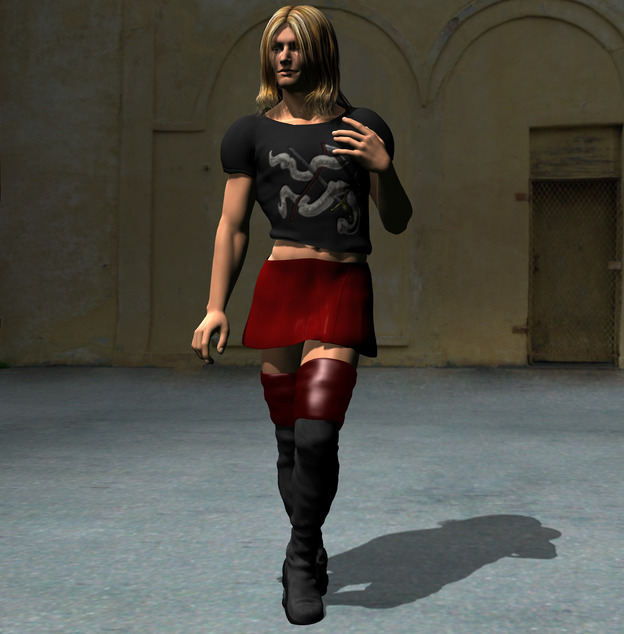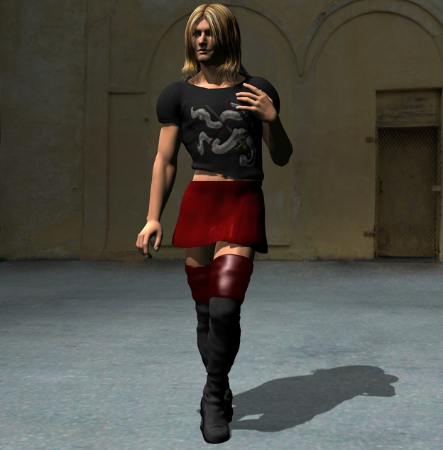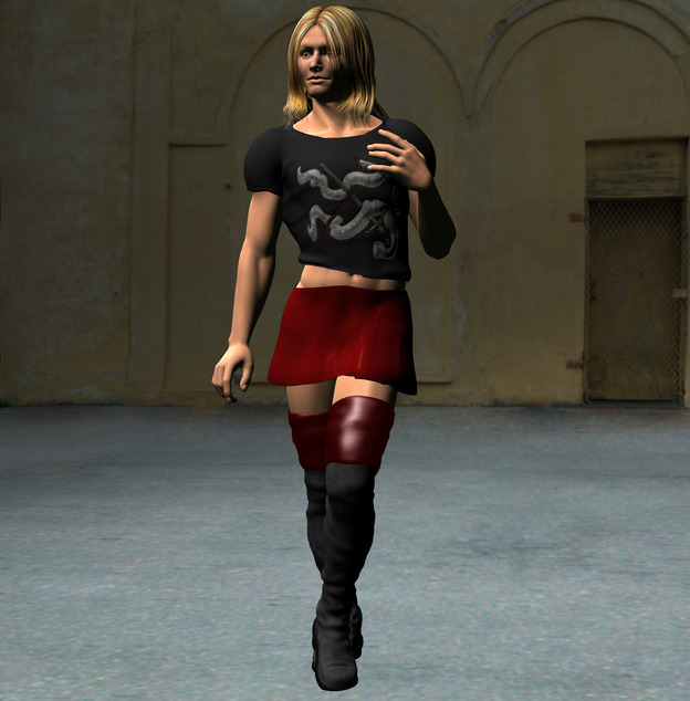 Notes: I dunno. I'm probably doing one more of this one, in the right colours, with different boots, but I kinda liked the red velvet mini enough to just run with it. *shrugs* Dark's got great legs, too.