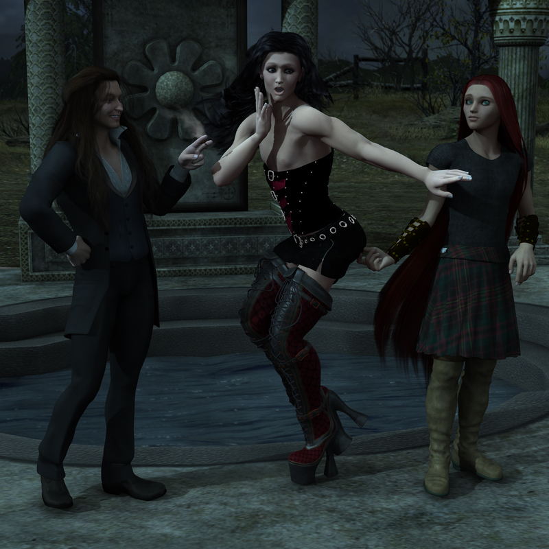 Notes: This is on my list of things that would probably be funnier if they didn't need to be explained. Ok, so, crackover from hell, here… That's Kerrith d'Shada, on the left; Frostburn, in the middle; and Rodolphus Lestrange, on the right. You're starting to wish I was kidding, aren't you… (Half the joke, here, is that depending on whose fanon you query, Frost and Roddy are sometimes technically distantly related.)