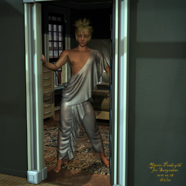 Notes: So, I learned to use dynamic cloth, finally. I've had the plugin since before I replaced most of my computer, last year, but on the older hardware, it never worked — just crashed the program. Now? Well, as long as I set the collisions in a sensible fashion, it works just fine. Why does this matter? The clothing in this image for