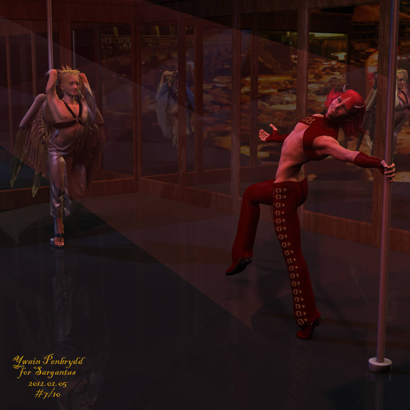 Warnings: Those trousers are a little translucent, but you have to really be looking to notice.Notes: Christ, this took forever. The mirrors are such a piss. I actually couldn't get them right, in the end, which is why some reflect solid black. That's because they're only reflecting what's directly in front of them, which is … another mirror. Most of them catch the dancers or the crowd, though. For