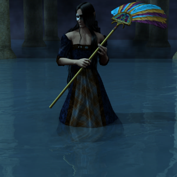 Notes: After some background chatter about Nox in drag, how could I not? Yeah, I could do a better job on this, but with test render times of 70+ minutes? I can't care that much right now. Take a wild guess how many reflective surfaces are actually in this image. No, really. Happy Sushi Day to Frost and Dark. Sorry about the lack of butterscotch…