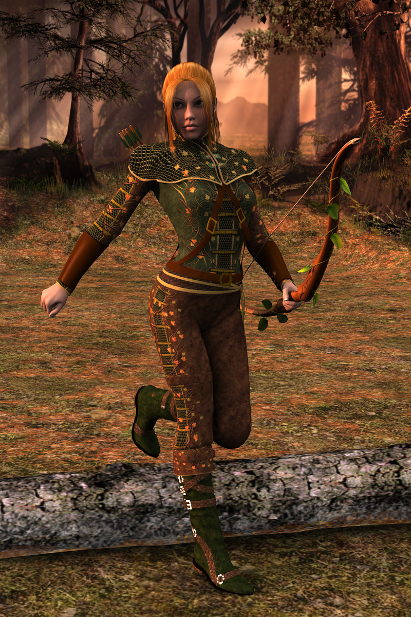 "A slender woman of average height, with bright blond hair and startling brown eyes. If she can be seen, she is usually dressed in brown or green huntsman's leathers. Leonor kept company with both Ice and Frost, for many years, and she taught bow hunting to anyone who could bear being instructed by a woman. Generally, she is practical and uncultured, but still reasonably pleasant."