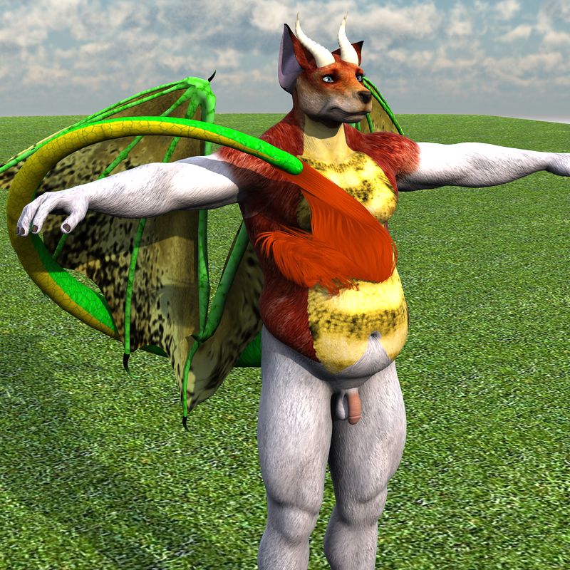 SpykeTyranno. There's some debate about what shade of orange that tail tuft is supposed to be, but at the moment, I like this one, so it's the one you get to see. I'm completely thrilled the tail took that texture, too. Built it myself, with no template. I had to do horrible things to make it fit, of course, but it works.