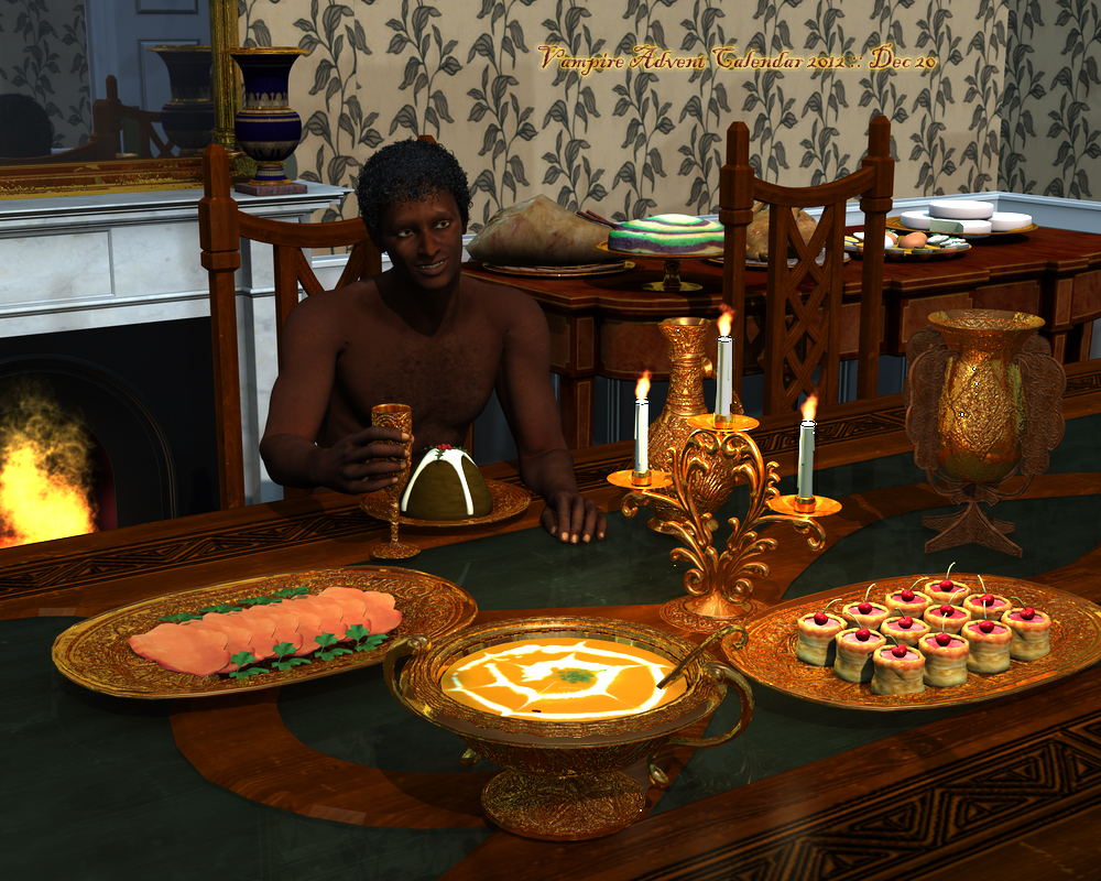 Notes: I'm still wondering what other vampire can't be seen in the mirror. Damianos is definitely looking at his dinner companion, but there's no reflection there. I'm also wondering where he found a priest holy enough to properly bless that dinner, but also willing to do it in the middle of the night… Some things are better left unexplained.