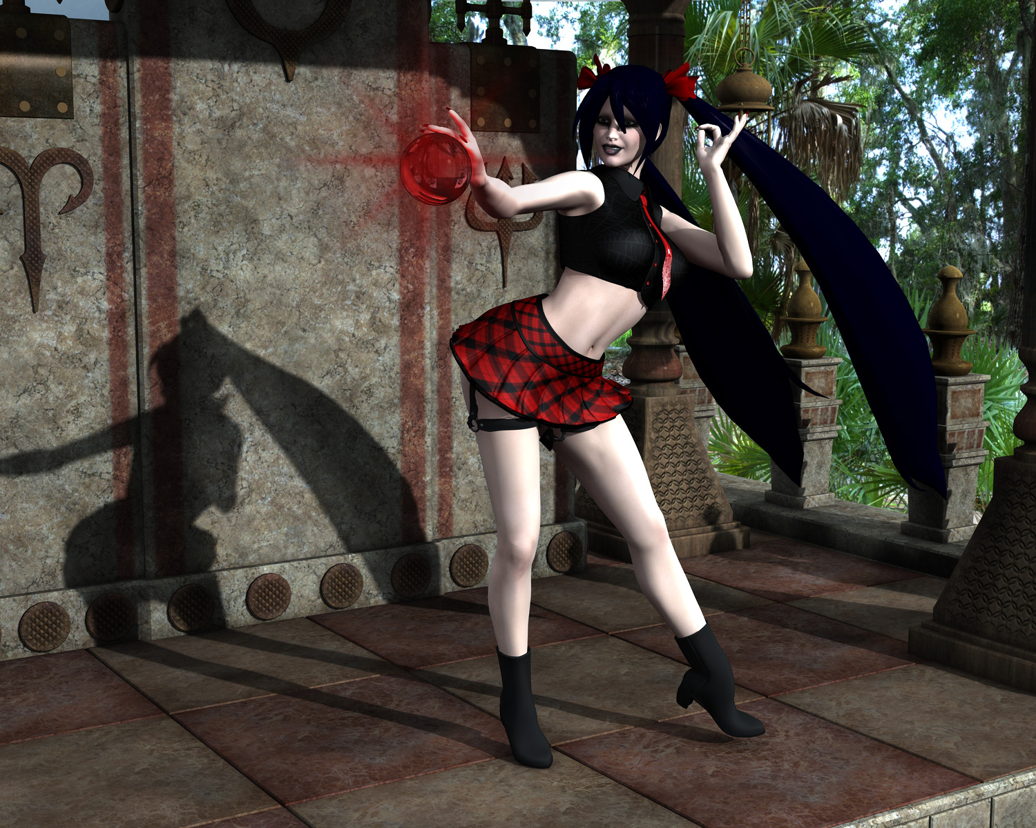 Notes: I dunno. I just got that hair, and I had to try it out, so… *laughs* Betty sort of volunteered. I never do anything with her, and I should probably fix that. Of course, there's not a lot of clothes that auto-fit to the V4 Morphs++, and she uses those morphs pretty heavily. I've got a few outfits I grabbed specifically for her, so you might be seeing some more of her, while I'm working on other stuff in the background. And yes, I shot this one wide because of the shadow.