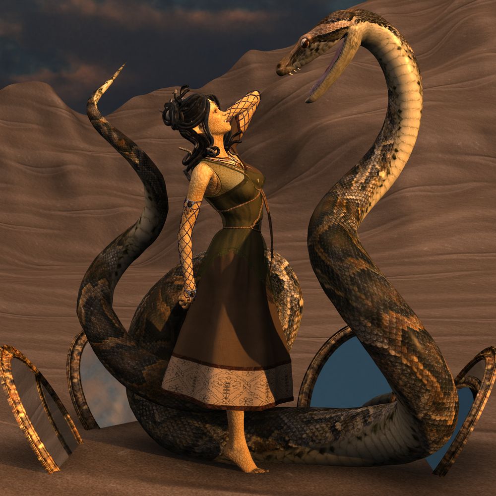 Warnings: Anthro serpent, with gorgon hair, posing with a giant python. Don't click through if snakes scare the piss out of you.Notes: I think I might like this dress better, but it hasn't got the cloth weight of the other one… So conflicted… No post work. Can't be arsed, today. Going to try the Burning Bride, next.