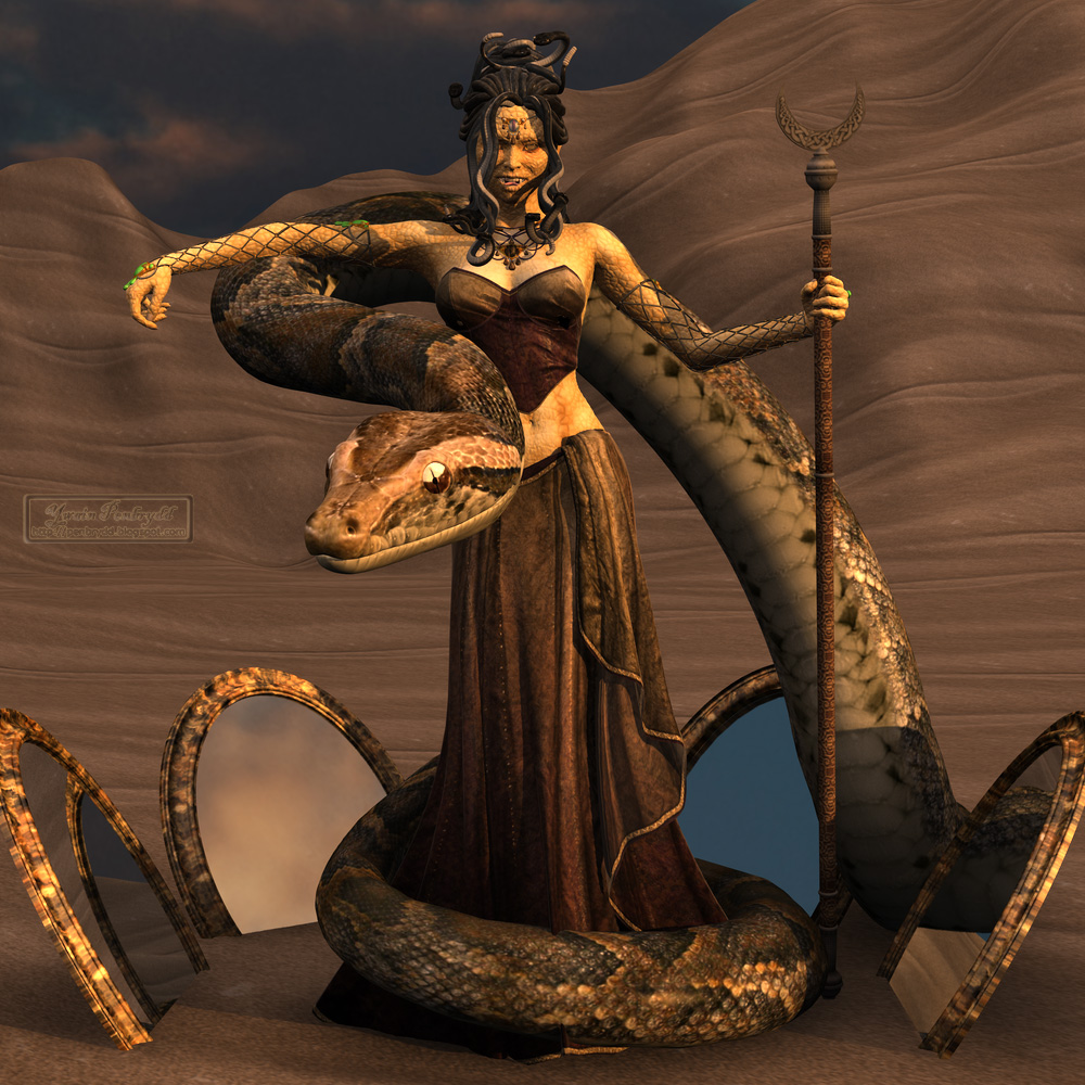 Warnings: Anthro serpent, with gorgon hair, posing with a giant python. Don't click through if snakes scare the piss out of you.