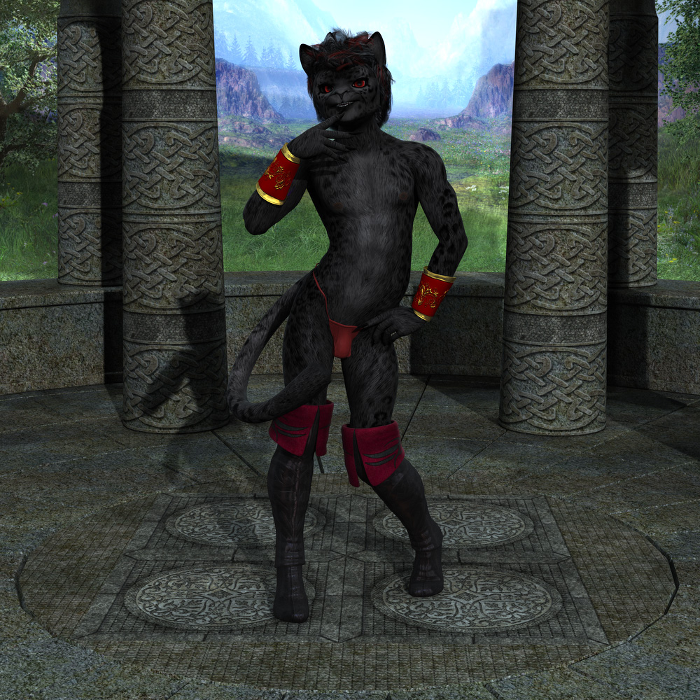 Warnings: Anthro kitty in a thong, boots, and bracers.