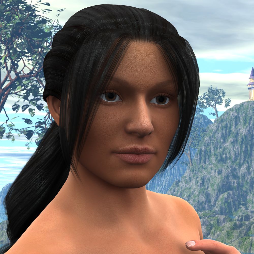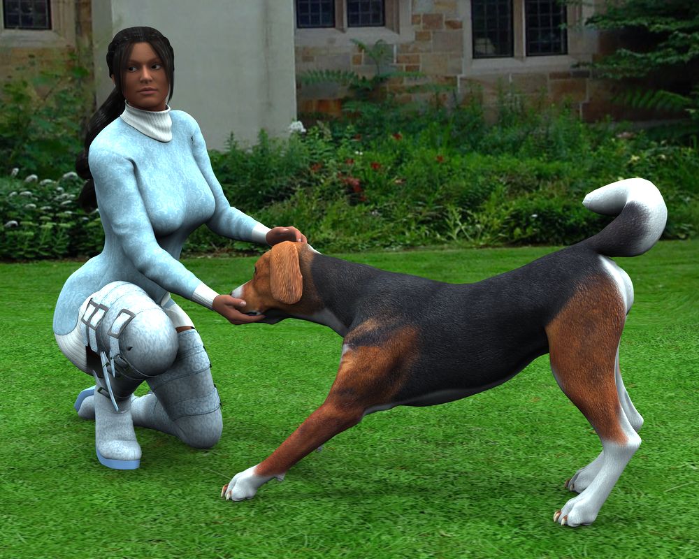 Notes: So, it's mentioned, in a few places, that Lir has this girl he's really serious about, and she's got two kids and a dog. But, I never made any art with this girl, partly because I'm really bad at skintones that don't approximate 'vampire'. So, here's a few tests of Elena, Lir, and her dog, Damocles. (Why is the dog 'Damocles'? Because she jokes that if he chews up her shoes one more time, she's going to cut off his head.)