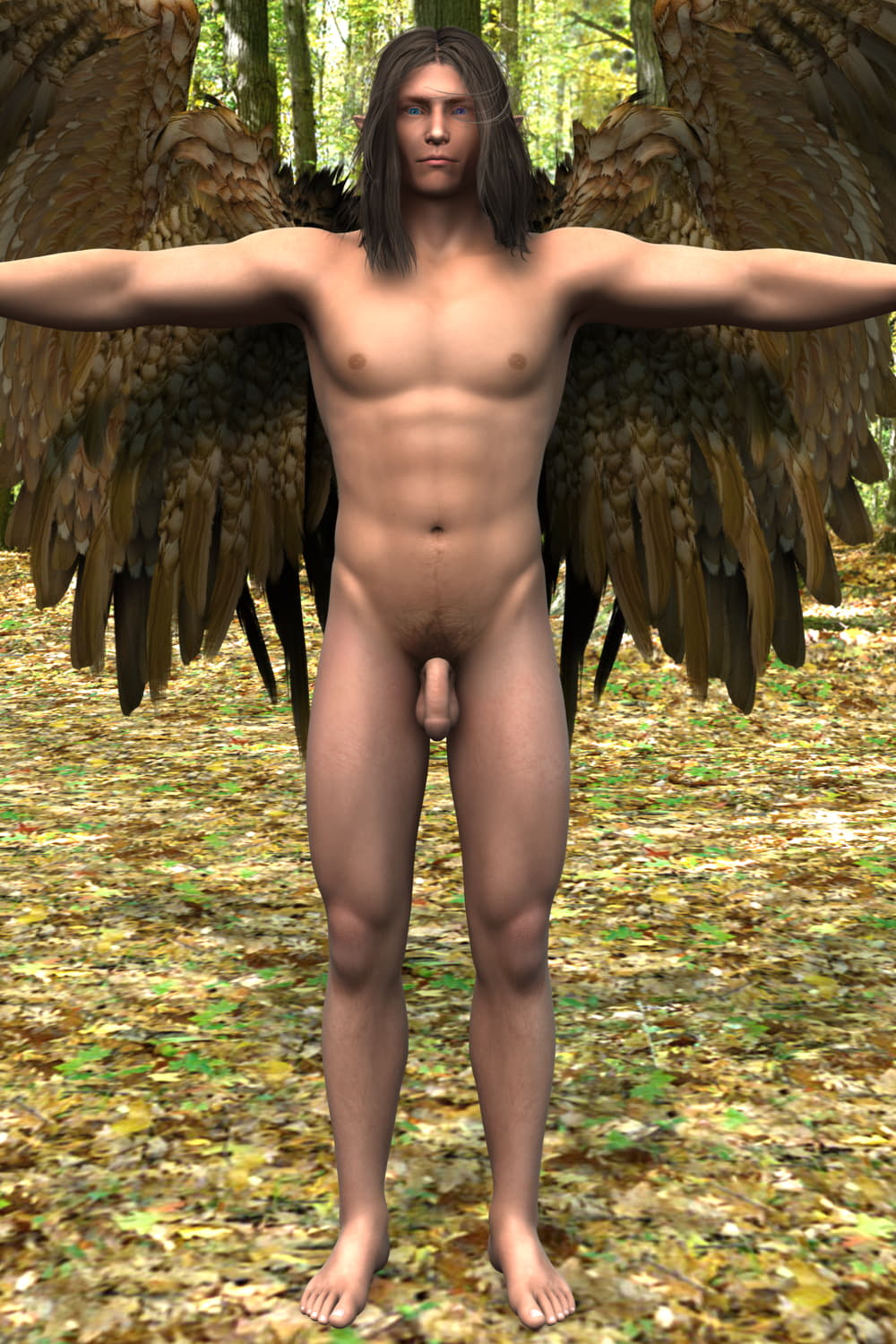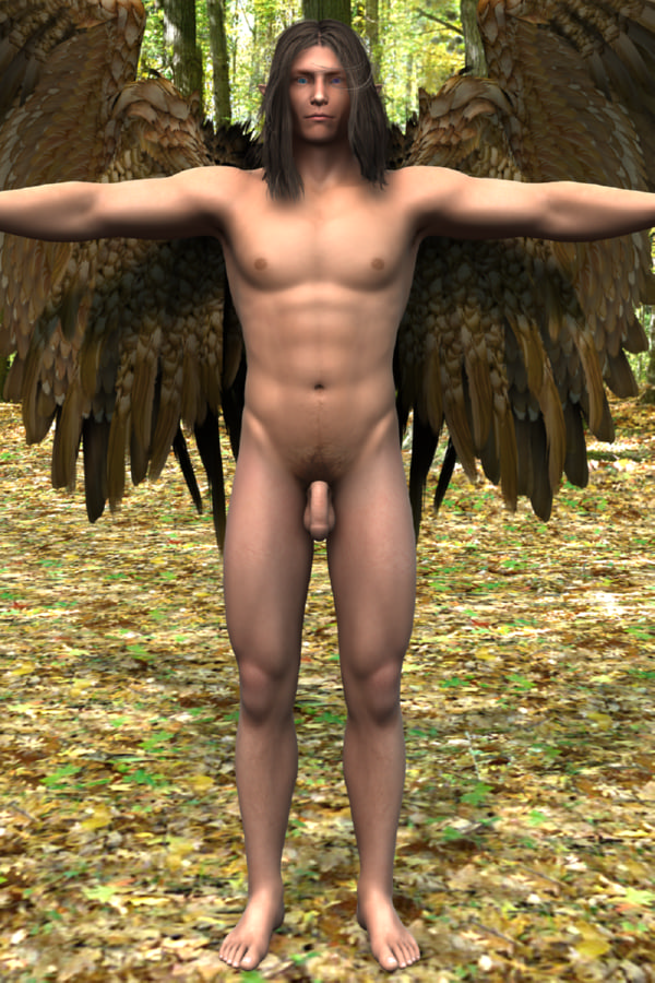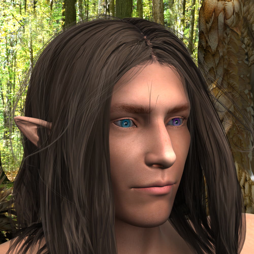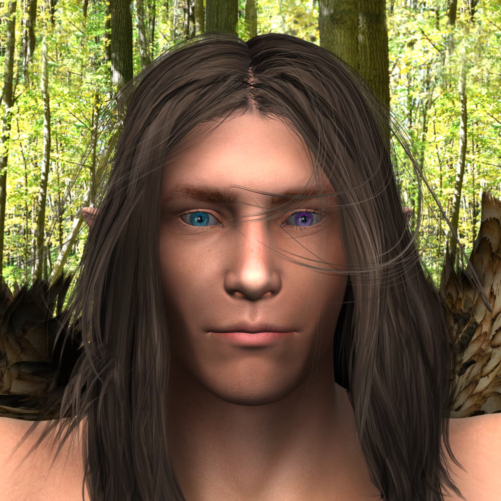 Keldrin's elfin angel. This was the other thing that got some use out of Gabi's golden wings, although they're brown, here. No post, because test shots, so yes his hair passes through his face a bit.