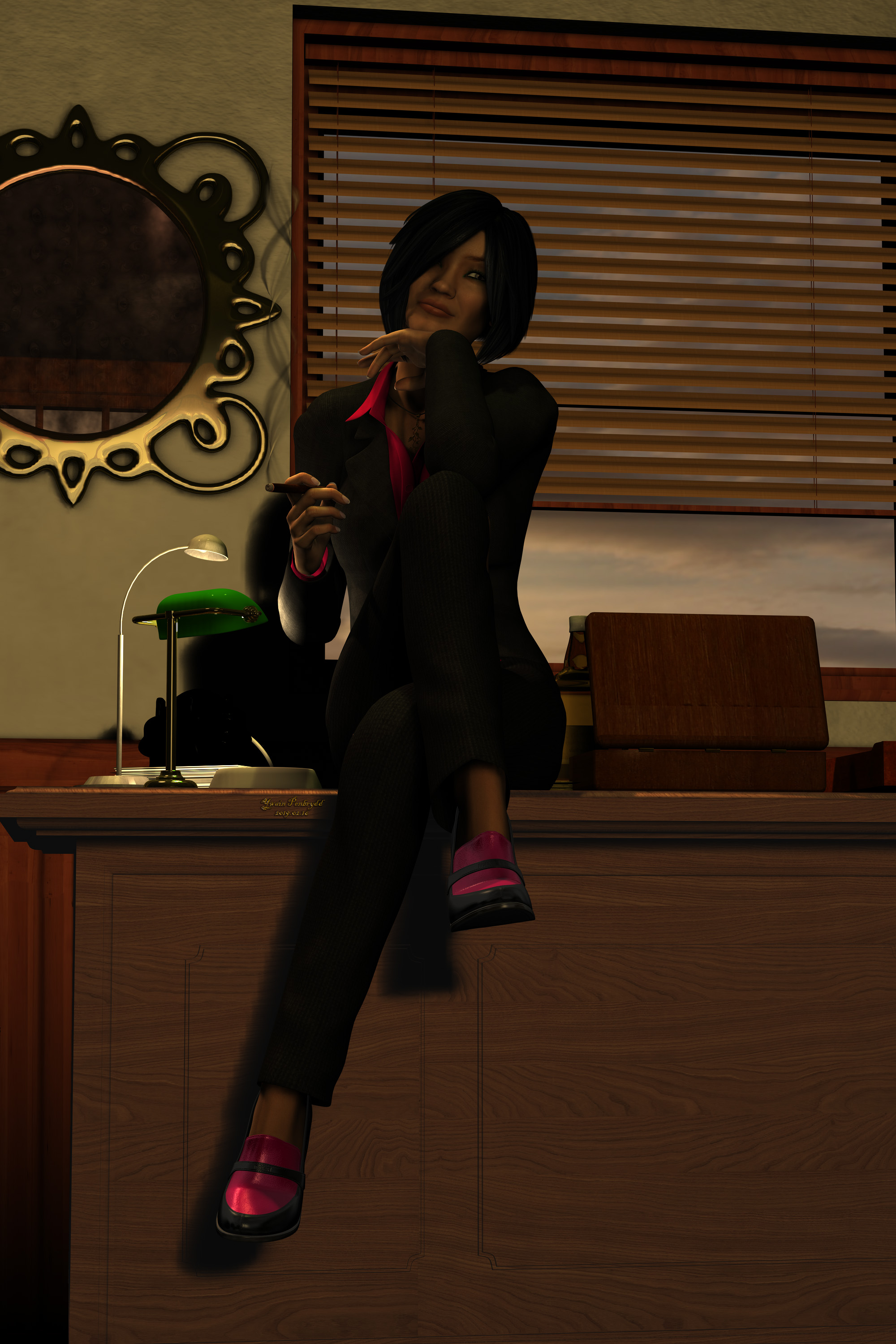 Notes: I'm still fiddling around with Lau. Can't quite get a feel for her, and I know at least part of that is the Eternal V4 Clothing Problem. But, here's a slightly improved Lau, with some implied Chaz. (I'm still hammering the bugs out of the eyeball mirrors…)