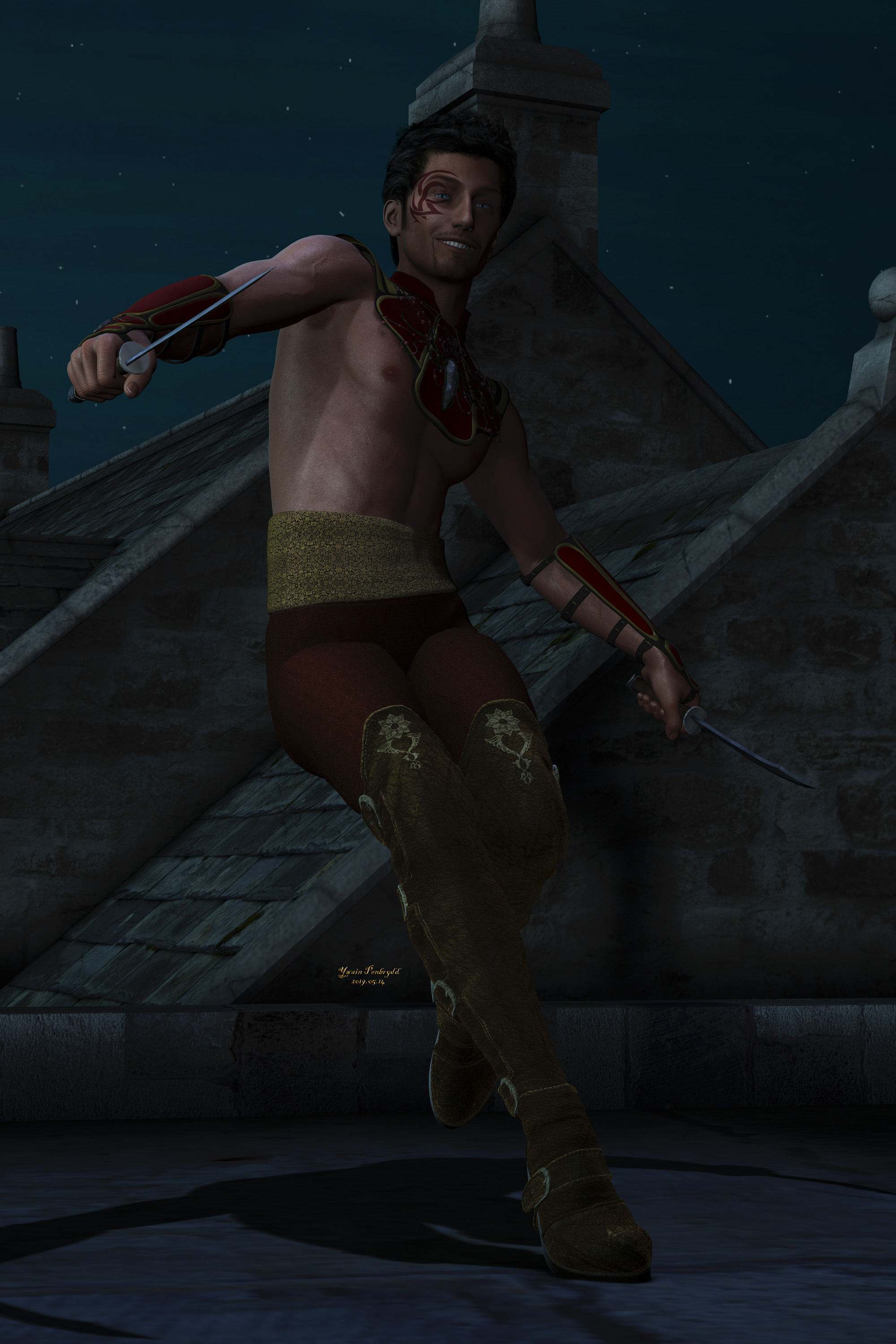 Warnings: Shirtless rogue with daggers