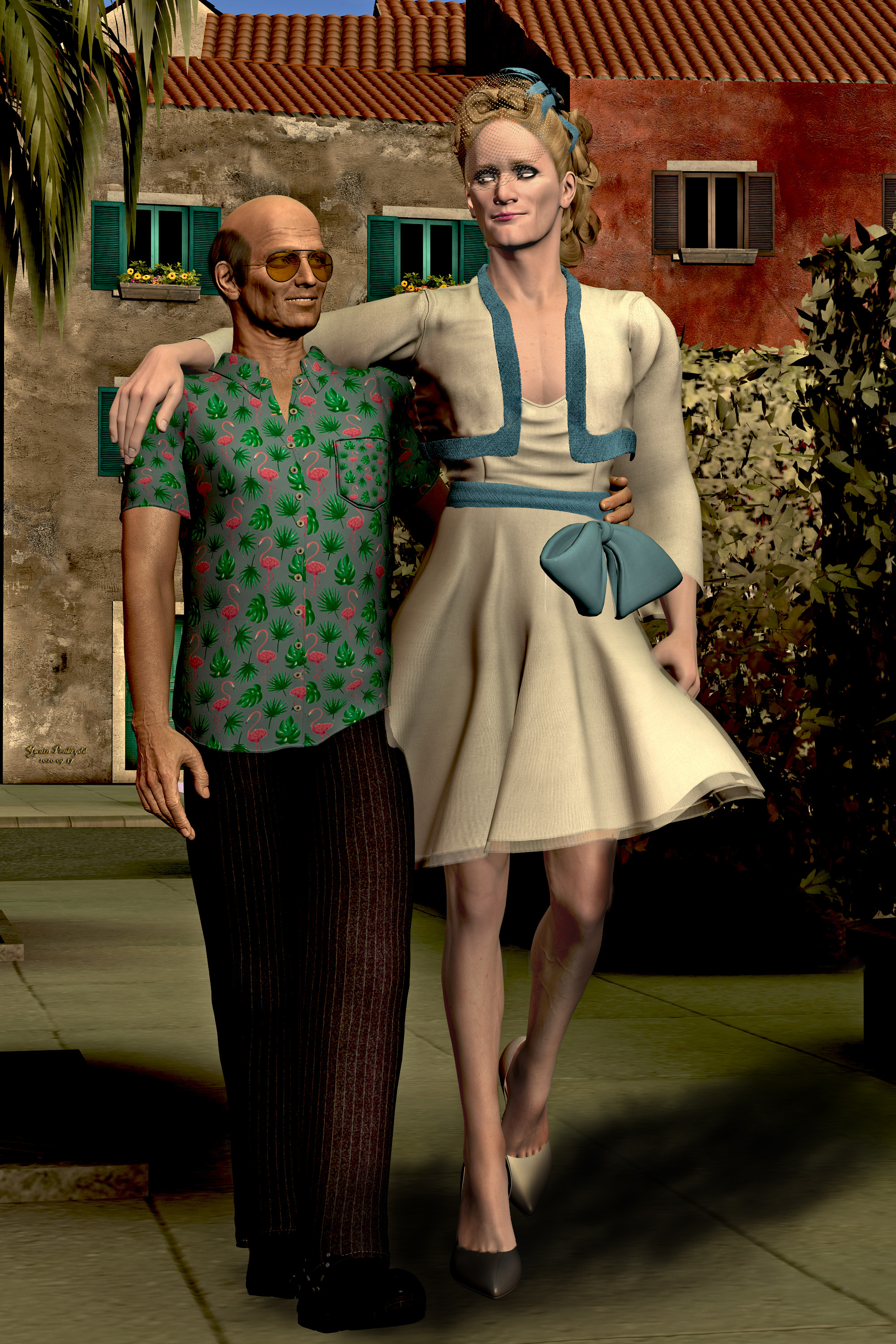 Okay, okay, I should've double-checked the dress before I went to the trouble, but it's close. The jacket's supposed to be shorter and feathered, but… I don't really have the parts to even fake that, offhand. Whatever, anyway, stupid doodle of the Florida scene from Love Letters.
