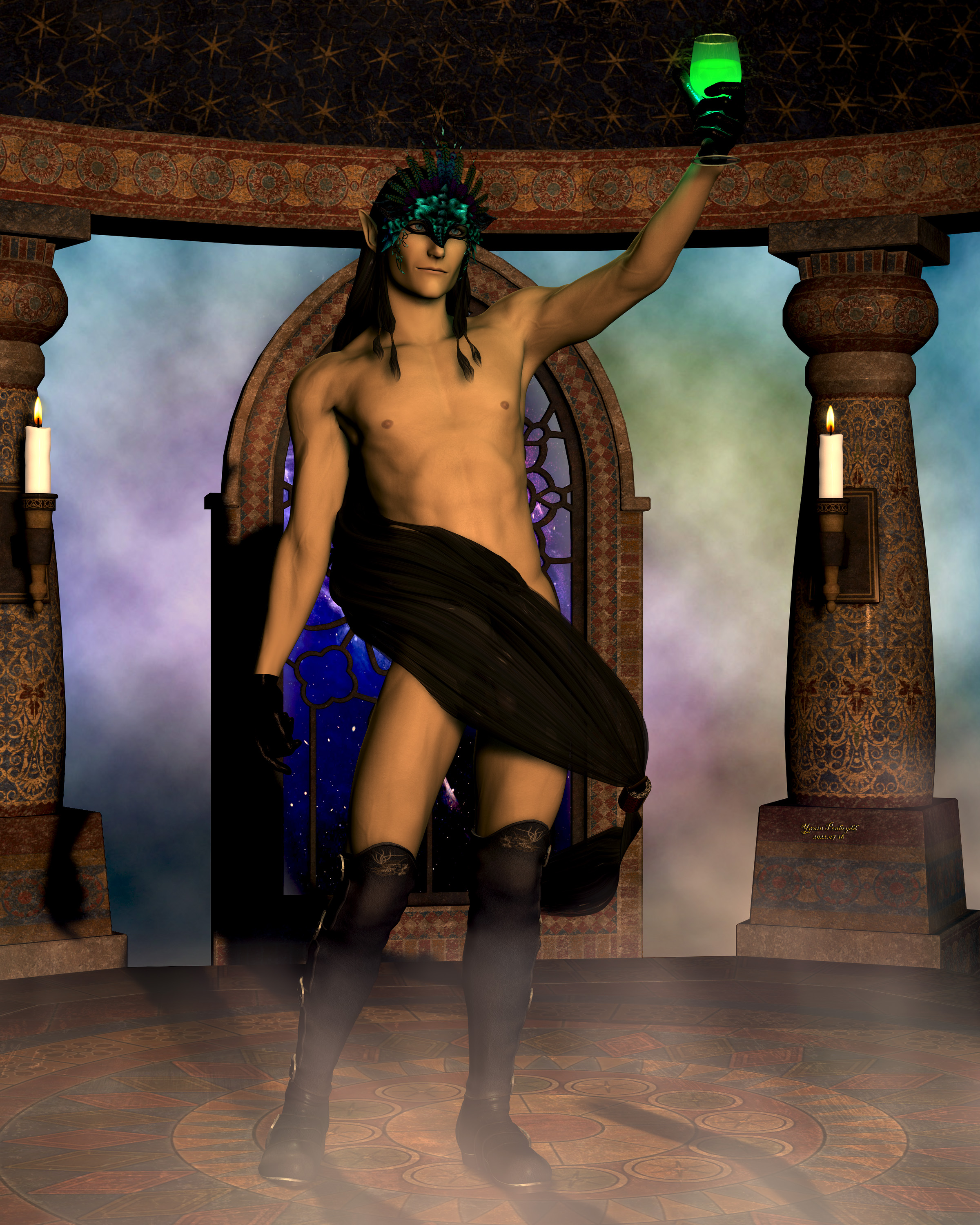 Warnings: Very long hair as substitute for clothing, glowing magical liquid