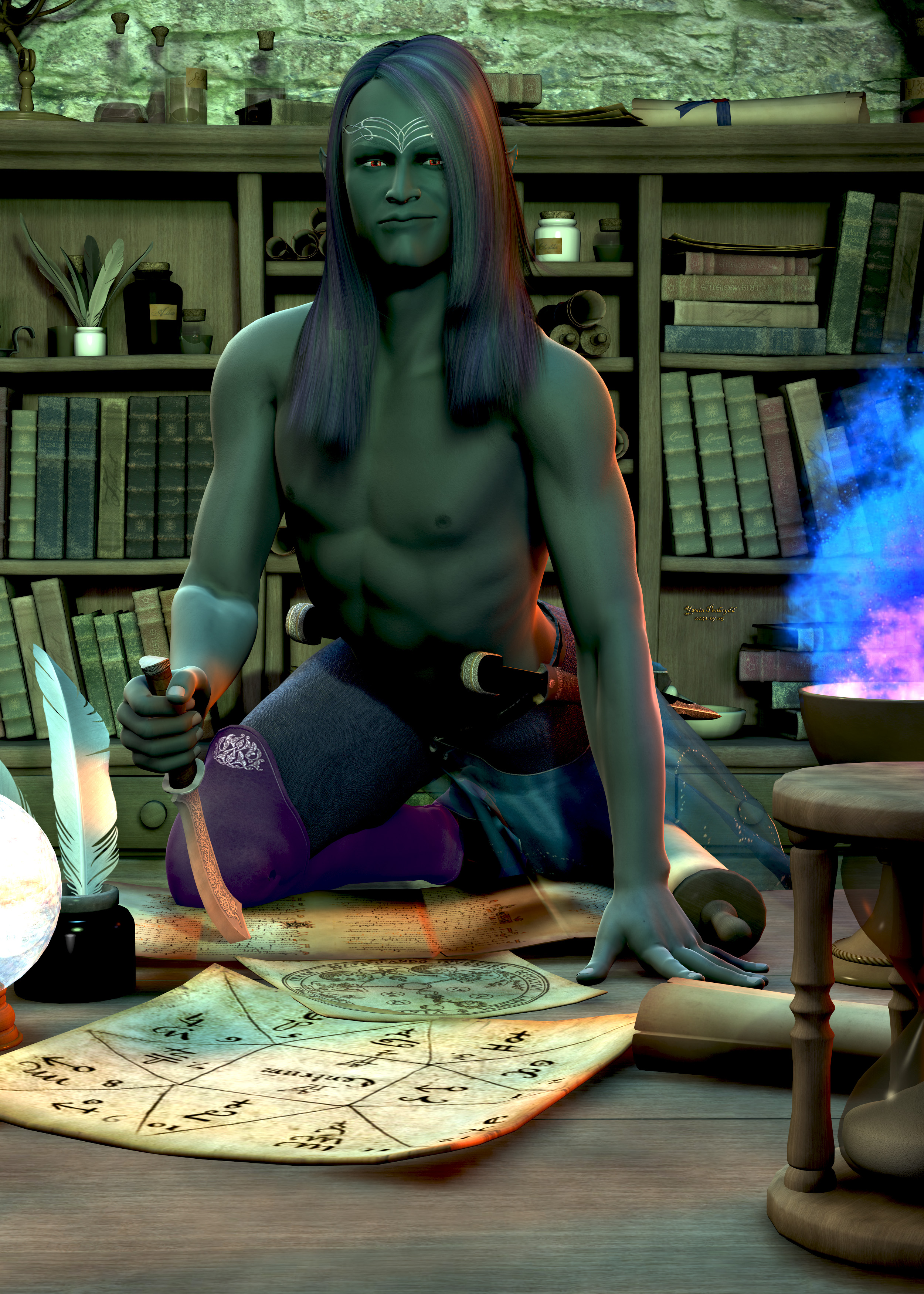 Warnings: Shirtless drow with sharp objects