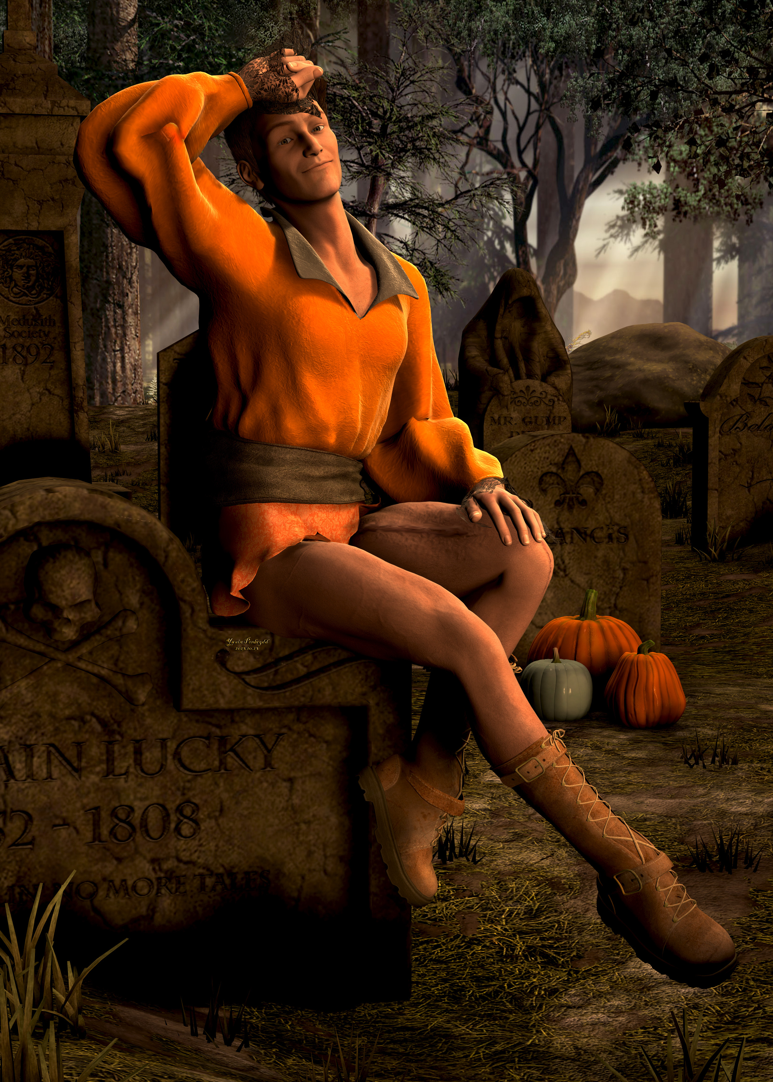 Notes: Will's not quite convinced a graveyard in Autumn Grove is a reasonable place to be, but he's been talked into it… He's also been talked into those shorts.