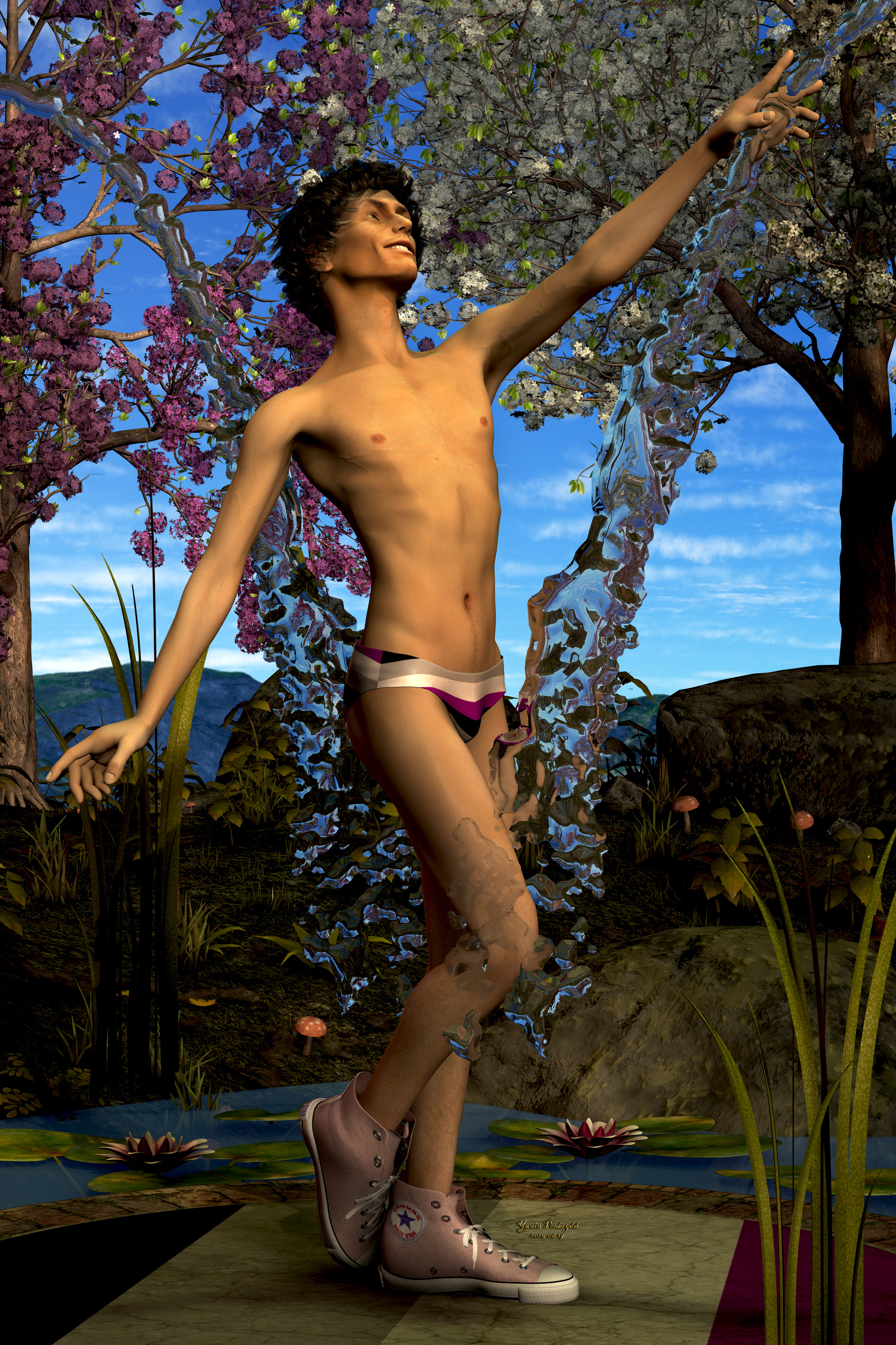 Notes: For our Birb, who wanted Shadow having a non-trashy good time, here he is playing in a fountain!