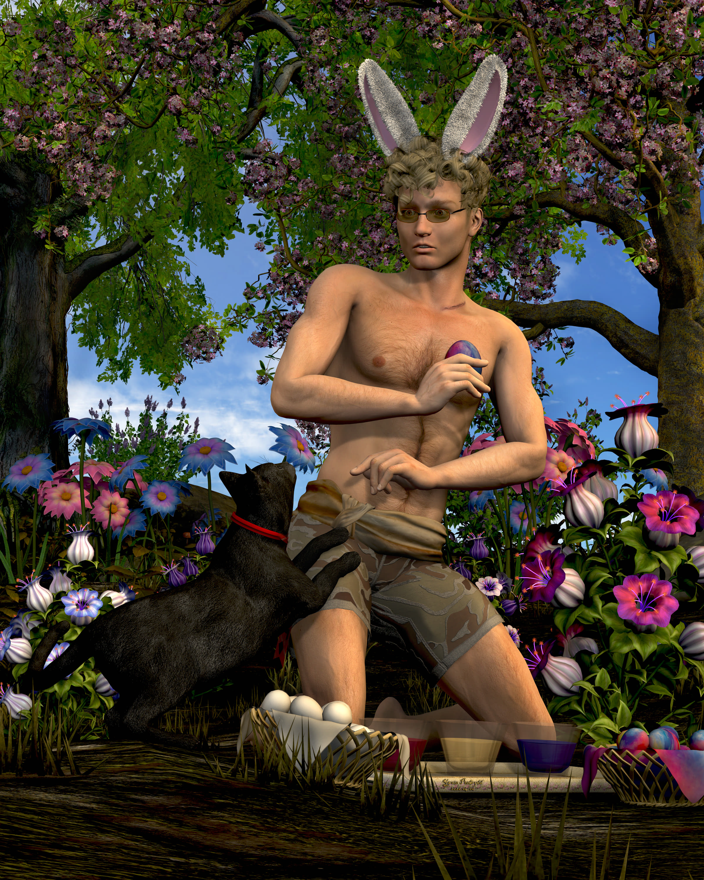 Notes: Sometimes, you're just minding your own business, dyeing some eggs, when the eldritch cat-mayor shows up and starts making demands.